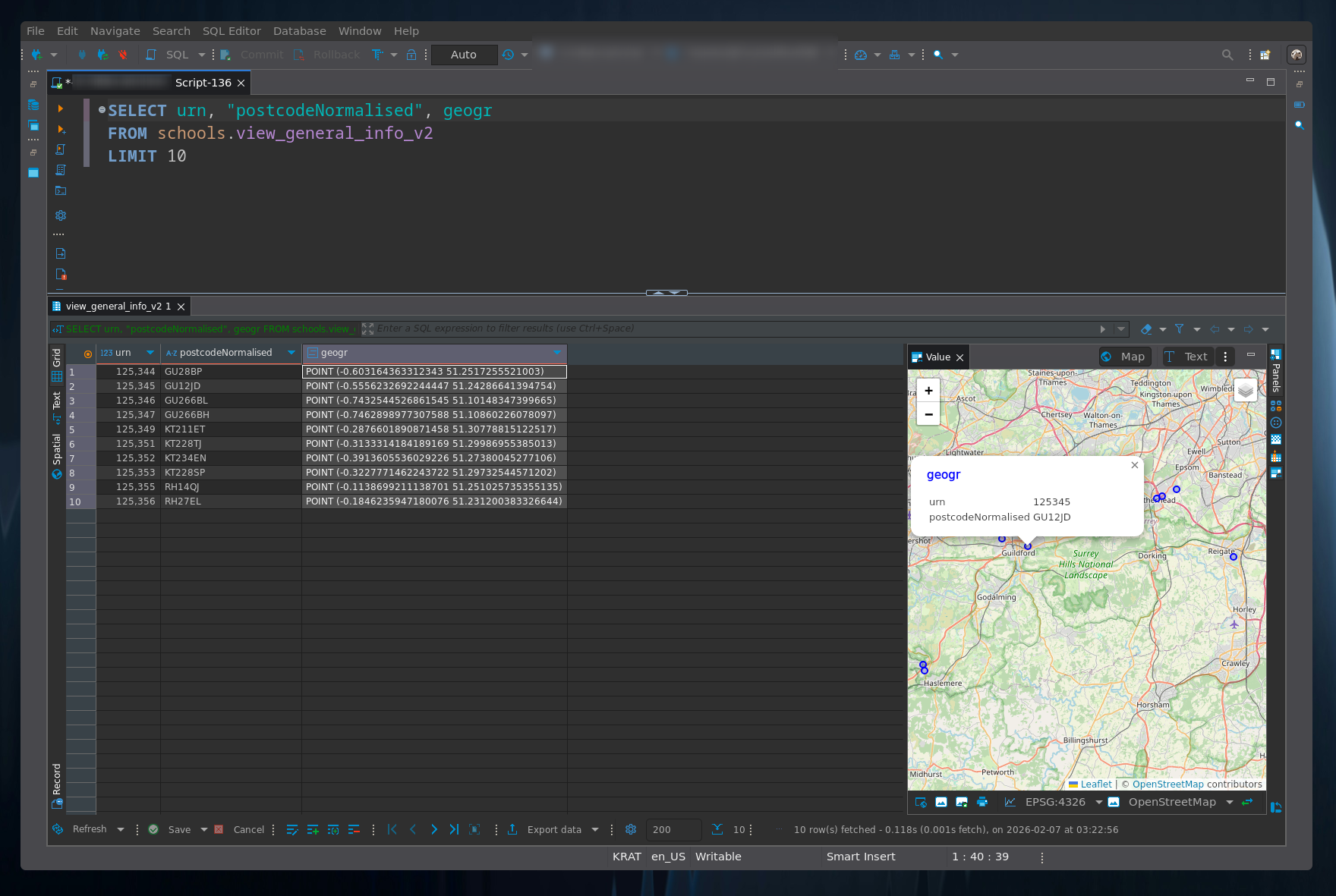 I would really like to see preview support for spatial data, I'm attaching an example from DBeaver.